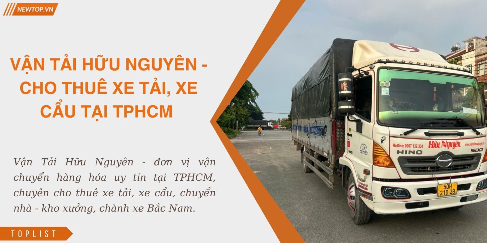 Vận Tải Hữu Nguyên là đơn vị hàng đầu trong lĩnh vực vận tải và logistics nội địa, cung cấp giải pháp vận chuyển hàng hóa toàn diện cho cá nhân và doanh nghiệp trên toàn quốc. Từ dịch vụ cho thuê xe tải, xe cẩu, xe nâng, chuyển nhà – kho xưởng đến chành xe Bắc – Trung – Nam. Hãy cùng Newtop tìm hiểu doanh nghiệp này nhé.